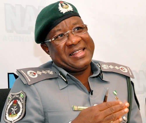 An operational van of the Nigerian Customs Service on guard duty to the resident was sighted a few meters away from the besieged residence.